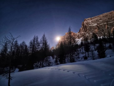 Enjoy a unique, snowshoeing adventure at night, where you can admire the Dolomites under a moonlight glow. This guided walk leads you through quiet woods and open meadows at the feet of the majestic peaks surrounding Alta Badia. Perfect for those seeking peace, a little romance, or simply a different way to embrace the Dolomites in winter.