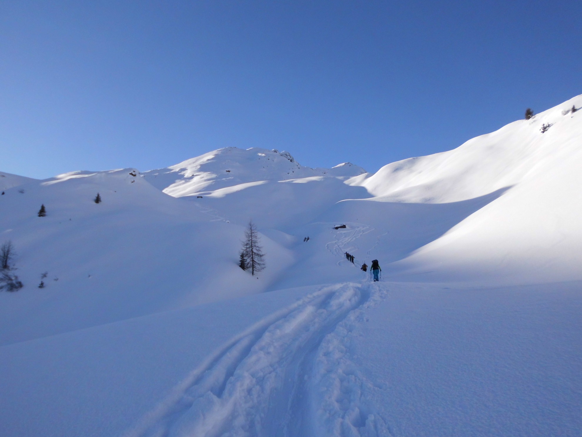 Discover a hidden gem in South Tyrol's Valsertal Valley! This dynamic tour features wide slopes with a brief forest section. Start with a short ascent along the toboggan track to Malga Fane, bypassing the forest easily with a service road. Enjoy varied terrain and unforgettable skiing experiences. -